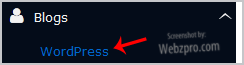 4. On the left side of your screen you should locate the "Blogs" category. Click on it and then click on the "WordPress" link that will appear.