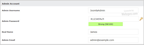 - Admin Username: Your new Joomla username (for security reason do not use the "Administrator" or the "Admin" username.)