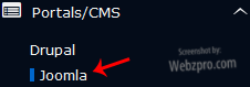 4. On the left side of your screen you should locate the "Portal/CMS" category. Click on it and then click on the "Joomla" link that will appear.