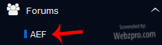 4. On the left side of your screen you should locate the "Forums" category. Click on it and then click on the "AEF" link that will appear.