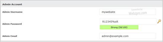 - Admin Username: Your new Vanilla username (for security reason do not use the "Administrator" or the "Admin" username.)